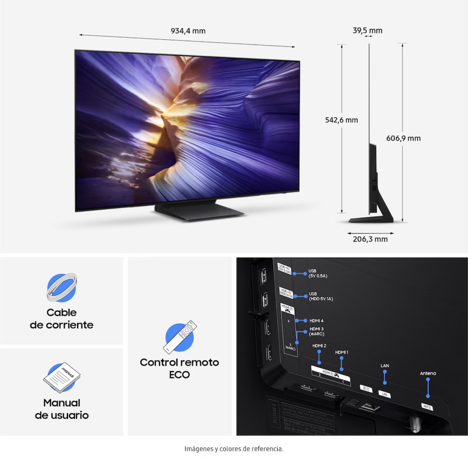 El televisor Samsung OLED modelo QN42S90FAEXZL presenta una pantalla de 42 pulgadas con resolución 4K y el procesador NQ4 AI Gen3 para optimizar la calidad de imagen. Este dispositivo ofrece una experiencia visual fluida con una tasa de refresco de hasta 144Hz y tecnología OLED HDR que mejora el contraste y el brillo. Cuenta con un sistema de audio de 2 canales y 20 Watts de potencia que incluye Dolby Atmos y Q-Symphony para un sonido envolvente. Su sistema operativo Tizen Smart TV integra asistentes de voz como Bixby y funciones avanzadas de juego como FreeSync Premium. El diseño LaserSlim proporciona una apariencia elegante sin bordes en los cuatro lados y dispone de amplia conectividad con cuatro puertos HDMI 2.1 y Bluetooth 5.3.